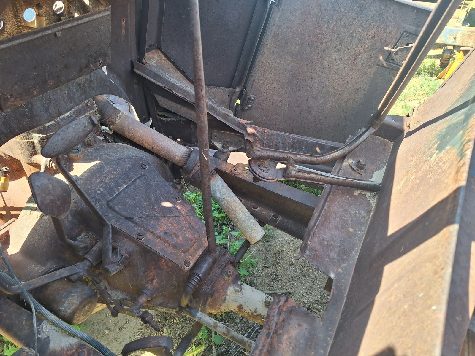 Hello all! I have this 1926? model TT dump truck (I do have the bed for it as well) that was in a fire in the late 50s and has been parked since then. It's on my list of maybe someday projects, and surprisingly the engine is not siezed even after sitting outside since it burned. I was looking it over as I tend to do every now and then, and I noticed a handle on the rear of the transmission that heads to the differential. I know the trucks have a worm drive differential which appears to be what this truck has, so is this for a differential lock, or is it a 2-speed differential? My second question is in regards to the front wheels. I know Ts got wire wheels at the end of production, but I'm not sure when that would have started. Are these the correct wheels for this truck, and would they have been used in unison with the wood spoke rear wheels?