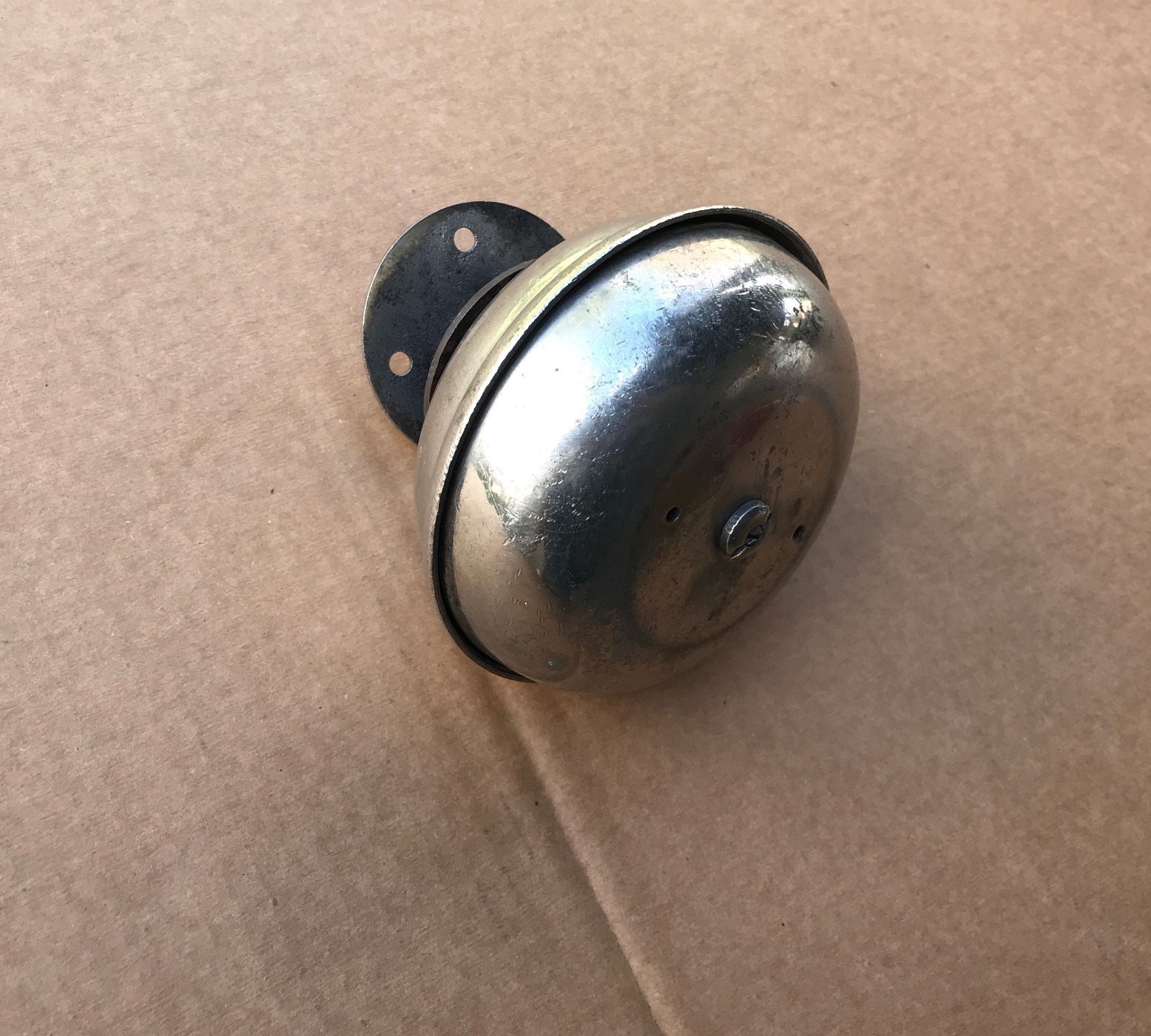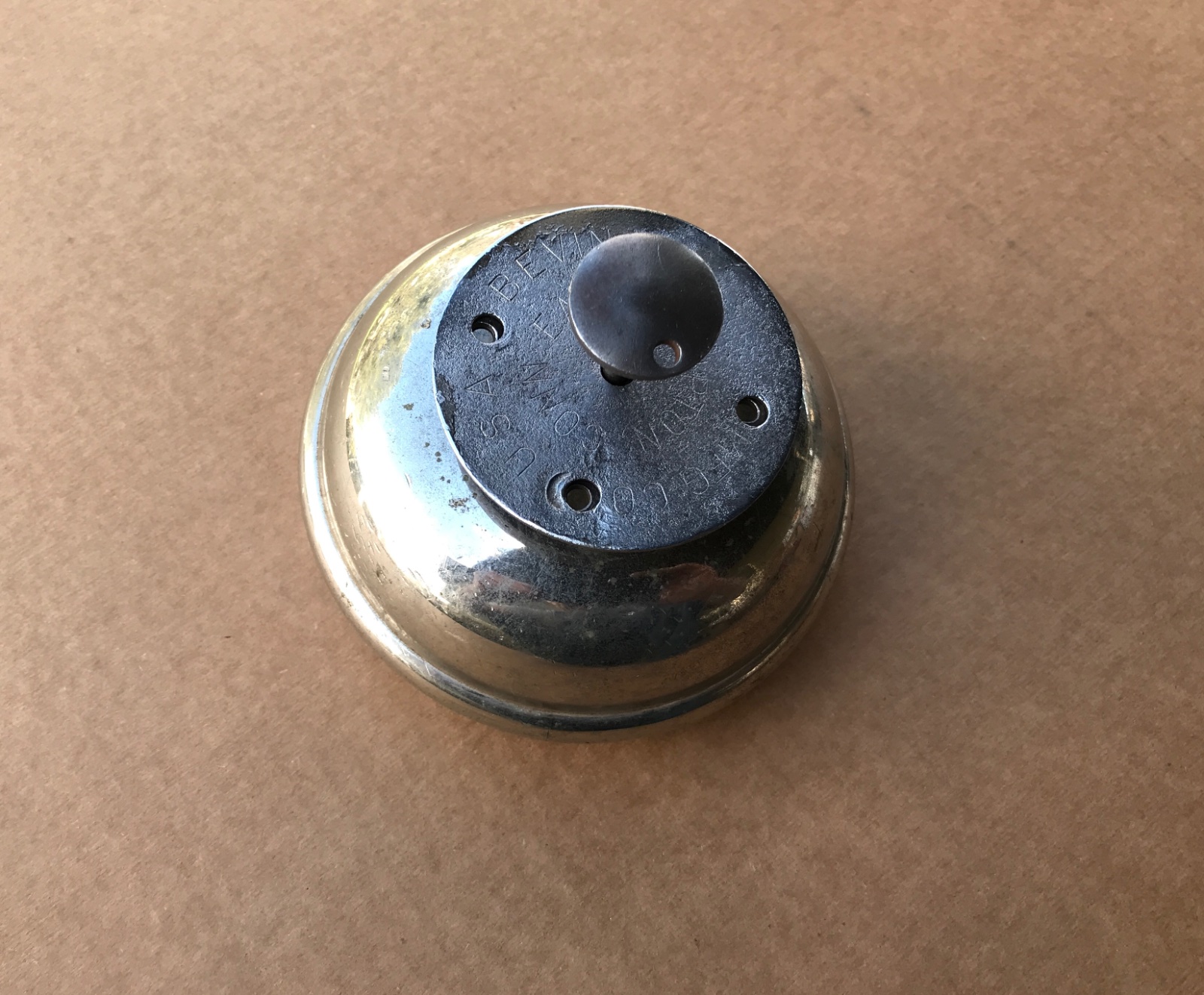 Original Bevin Bermuda foot bell. This original Bevin bell is in original used condition. It is a take-off that was stored for a long time. It works nice, very loud DING DONG. No dents, just corrosion on screw plate and many road scratches and wear from being under a car for 100 years. Restore or use as is. 5.5 diameter. 200 shipped.