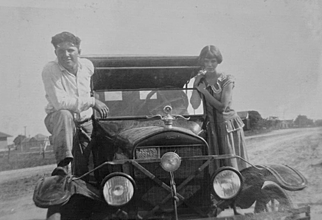 Fender brace, accessory steering wheel (not a fatman), Texas radiator license tag, all appear to be the same. So most likely the same car and flapper.