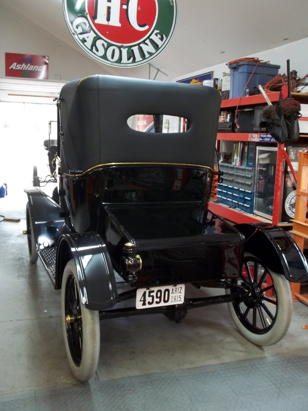 The little I know. The earliest convertible couplets had different side and tail lamps, and the taillamp was mounted nearer the fender to gain access into the early style rear door into the turtle deck (for those not familiar with the early couplets). Therefore, they not only had different lamps, but also different brackets to mount the tail lamp. Early in the 1915 model year, the turtle deck door was moved to the lid on the top of the turtle deck. Shortly after that, the tail lamp was moved to its more usual position behind the turtle deck. I do not know for sure, but I believe the couplet at about that time went to the same tail lamp bracket as the runabout used. That is what I have read, that is what I think likely happened. But I do not know that for certain.