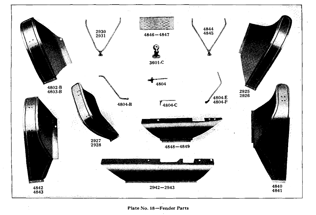 I checked the 1920 parts book and found that the rear fender irons are the same from 1913 through 1920 and both the coupe and the roadster used the same iron. When I measured from the top of the front and rear fender irons I get the measurement of front 34 1/4 inch and rear 37 3/8 inch. from the floor to the top of the fender irons. That means that the rear fender sits 3 inch higher than the front fender, Is this what it is supposed to be? I have wire wheels both front and rear are 30x3 1/2 but that should only make a difference of 1/2 inch.. I don't have access to a 14 roadster to check to see if both fenders are the same height from the ground. The same parts book lists the front fender iron Right or Left from 1909 to 1920. Before I started the restoration I checked the frame to be sure it was straight, and it is.