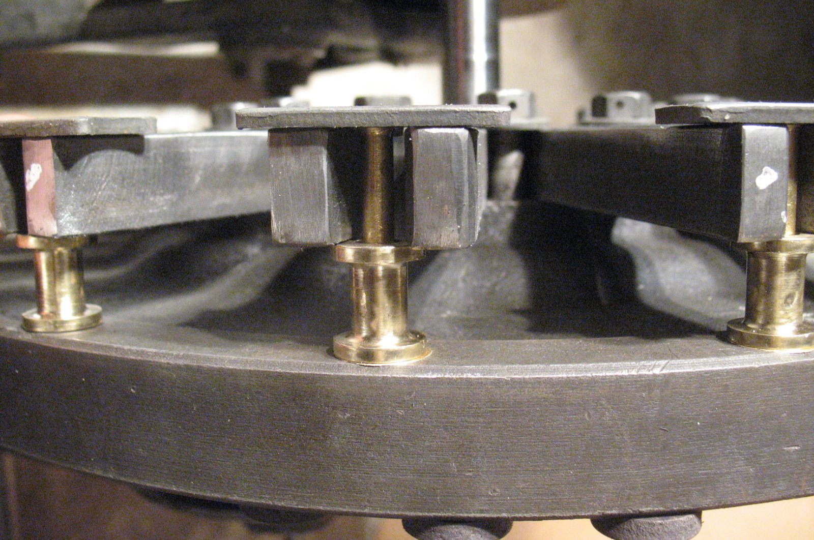 Well I don't know what to do next. Second Magneto I have assembled. First one went together as it should, took a little shimming to get a .025 air gap. Second one not so much. Assembled the magnets to the flywheel using new spools. made sure all of them were in the same plane using a KR Wilson gap guage. Took some love taps to lower a few magnets Mounted the coil ring on the back of the engine, and with the gap guage, shimmed it just enough to make it level and the wilson tool hits every coil in the ring equal. I did not use the Ford shim or any other shims. I set the flywheel/magnets on the crank shaft flange with the transmission shaft in place just to see what I would need to do to reach the .025 air gap. I have no gap at all, the magnets hit the coil ring. Fresh engine, and the rear main has an equal amount of babbit showing on both sides. the magnets and hold down plates came of the engine. Any thoughts on what to do next?