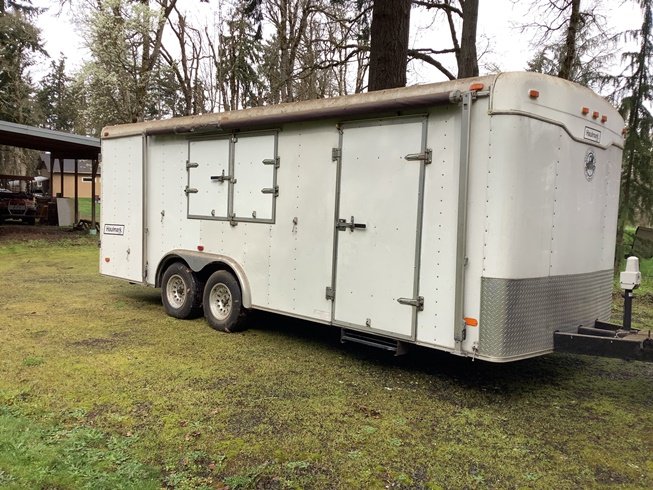 Have 22ft long by 8ft wide Haulmark Trailer set up inside as part storage was a Model A and T ford parts vending Trailer is 7100 gvw on tag has Oregon Title get into the Swap Meet season in style asking $8500.00 give me a call Matt 503-824-268one