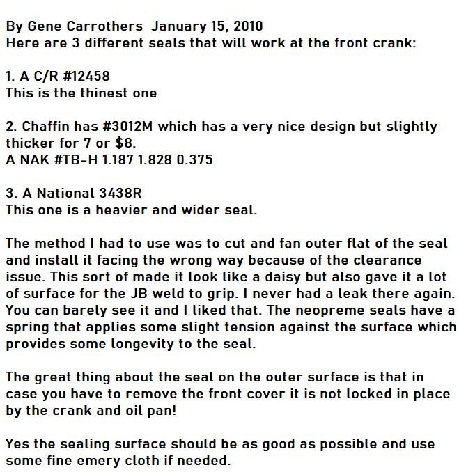Re: Crankshaft seal leak answers