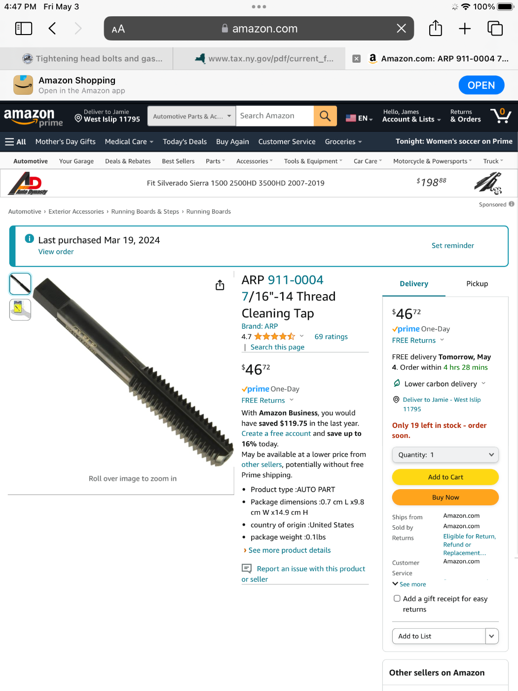 This is what I bought to clean head bolt holes. Going to replace head in next 2 weeks.