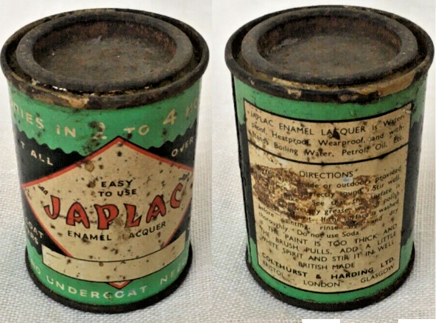 Back when I was a kid, the 5 & 10 stores sold a black enamel we used to call Japlac. I always assumed it was Japan black - like that used on old steel hardware and tools early in the century. Slapped on metal, it dried fast and left a shiny dark finish. I also assumed it was what Henry used on the Ts. Try and find the darn stuff today in this country is like looking for the proverbial needle. Google it and I get a bunch of ads from Indiamart. (seems a lot of my searches hit on Indiamart) Does anyone know of a source in this country that’s not targeted to artists and priced in $100s per gram(s)? Or did the Alphabet agencies ban this too…?