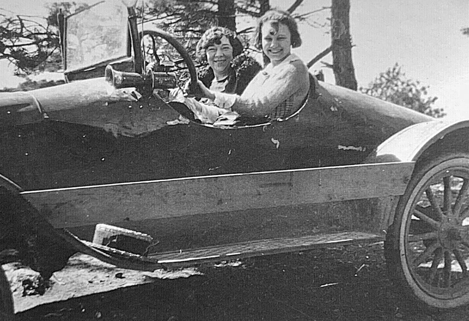 Third photo from the top: The girl with a curl in the middle of her forehead driving the speedster - is that 2 X 8 board a luggage rack or front/rear fender brace ??