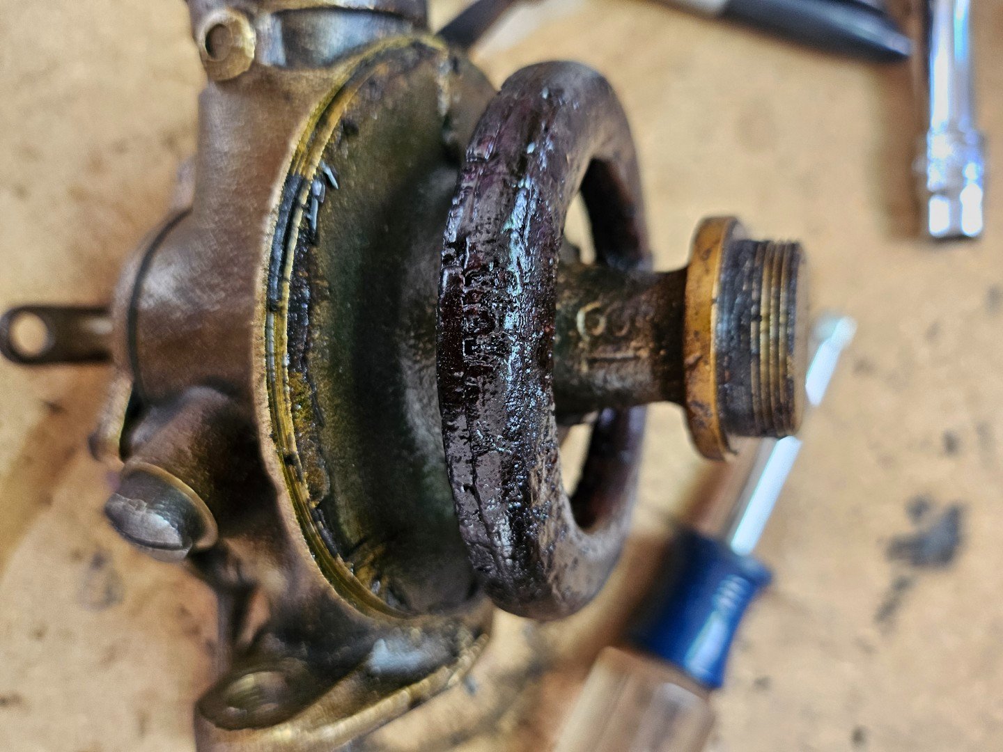 The Holly G carb was very gummed up internally, requiring a good soak, snaking the passages, resized the main jet, installed a new strangle tube and composite float (the cork float literally disintegrated in my hand). Hopefully good to go now...