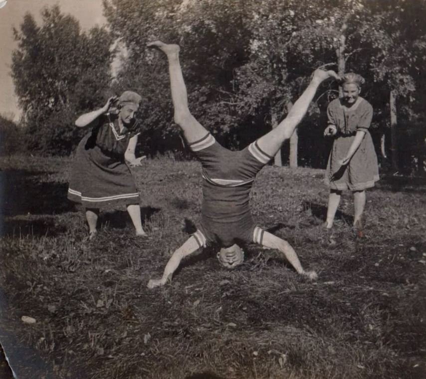 I believe he is divining for water, while the ladies are doing a rain dance. Could this be the year that the Regatta was rained out? A.K.A., "The Great Dampening of 1913". A great many cattle were dampened at that time.