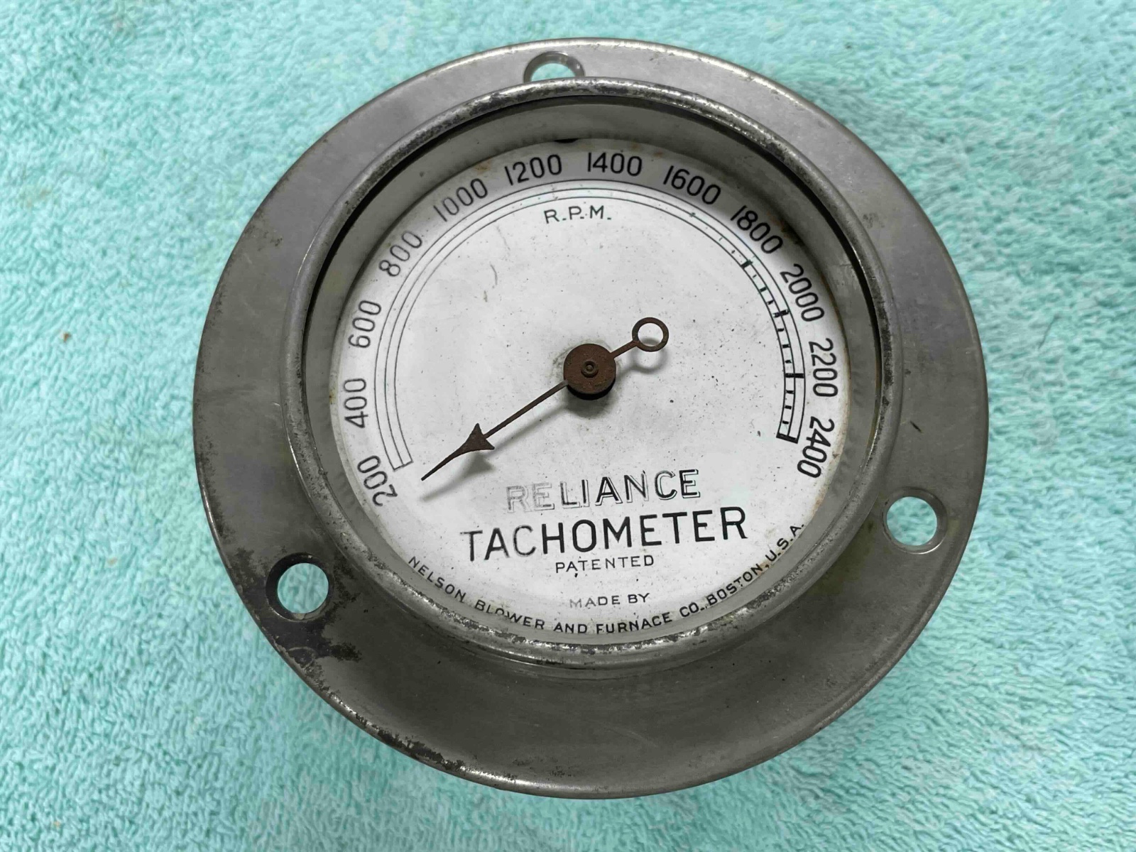 Reliance brand tachometer, no front glass, 3 1/2" diameter porcelain face, with drive swivel