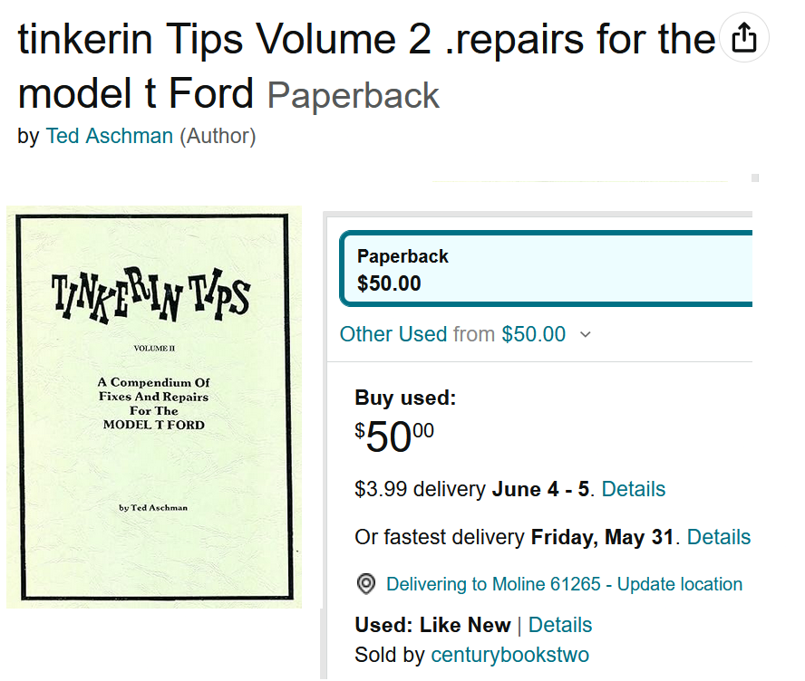 Here you goReno Speedster wrote: ↑Mon May 27, 2024 10:50 amThanks guys. It looks like I have been using the wrong book. I think I have a copy of Tinkering Tips 2, but I didn’t know it was the one to use. Time to find it.