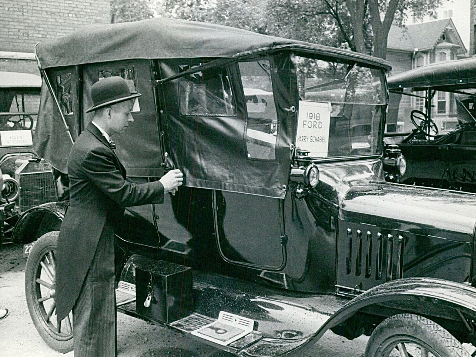 Photo #6 is especially interesting. Pretty sure it’s a car club gathering, show or tour perhaps. The date of the photo up for speculation, but I would guess early 1960’s when “old car folks” were enthusiastic about sporting “period dress” when out with their cars. The dapper fellow’s derby and swallowtail coat are not technically anachronistic, but not quite authentic for the average Ford owner of 1919.