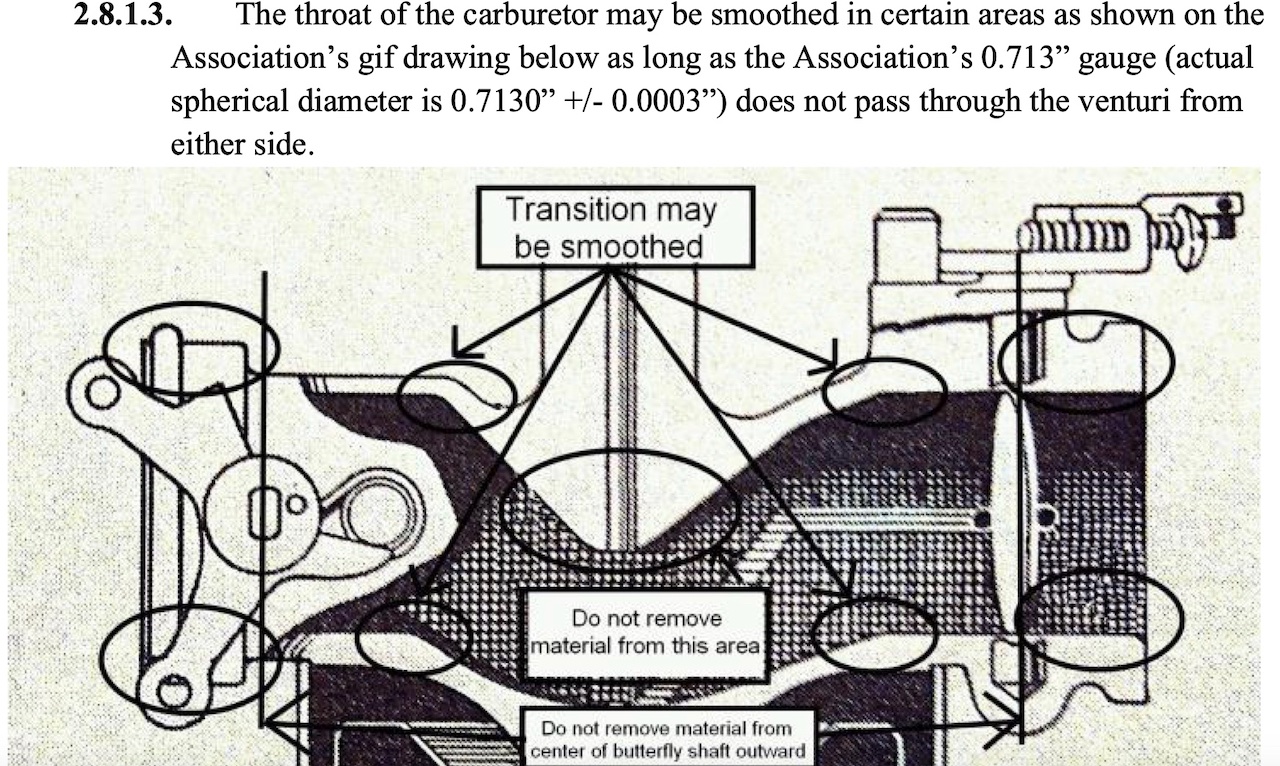 Only a bit of 'smoothing' at the sharp corners of the venturi, and a guage is passed thru to check that the bore isn't changed, Montana 500 Rules are stock like sway back NH.