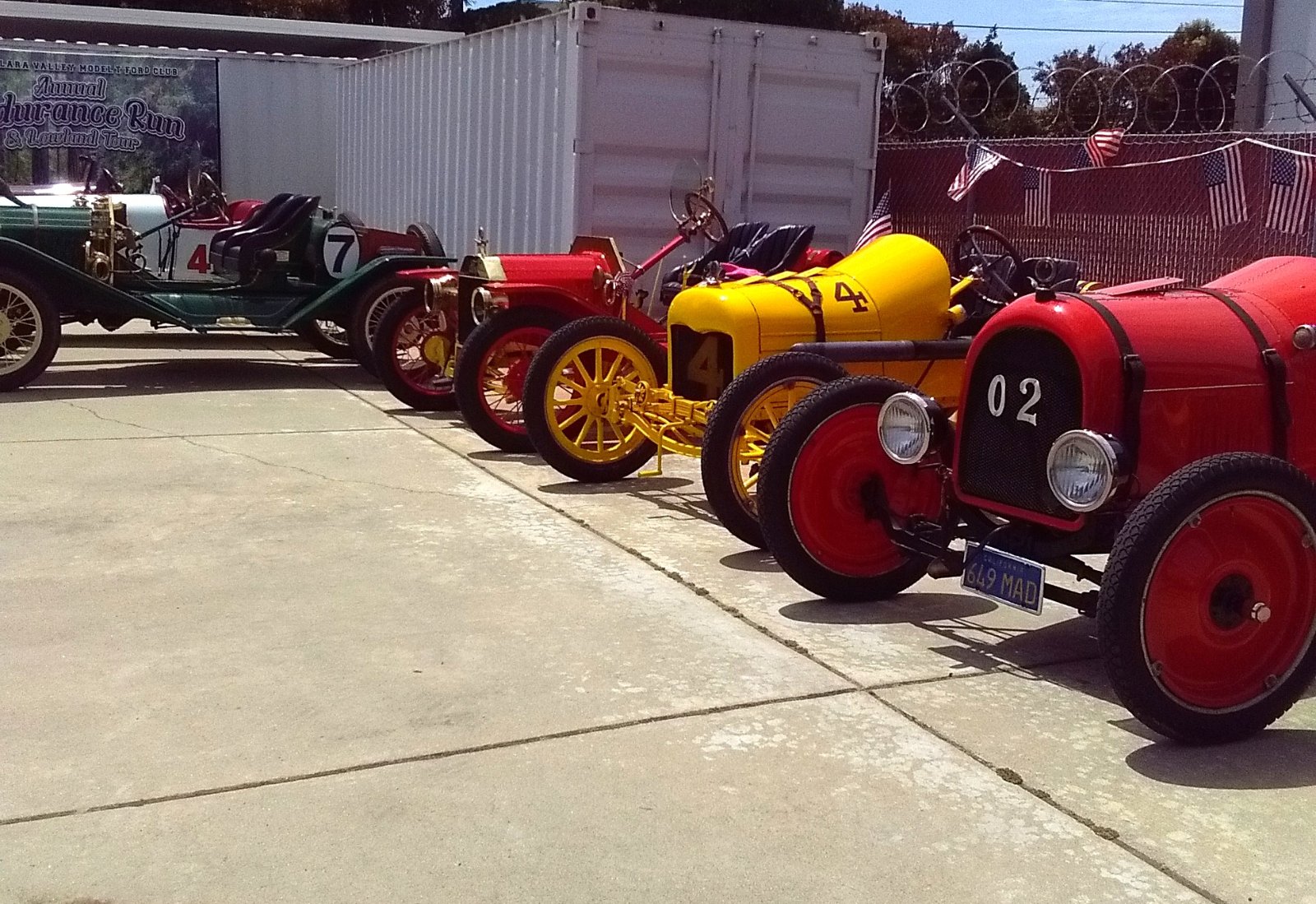 - * REQUIRED* Type and Year of Model Ts owned: 1909 replica Transcontinental race car, 1915 2 man race car, 1918 American bodied speedster