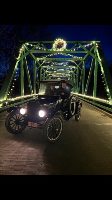 I’m including some pictures one is a rear view showing the bed. One of my grand daughters sitting in it. One is if it beside one of my steam traction engines. And one was taken last December of my wife and me in it at a bridge in town decorated with Christmas lights. Maybe I’ll get it out and drive it this weekend.