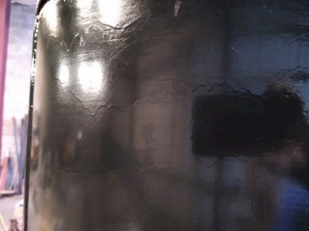 I realized that it was a terrible paint job. The surface prep almost non-existent and yes, too much thinner, too much coating.