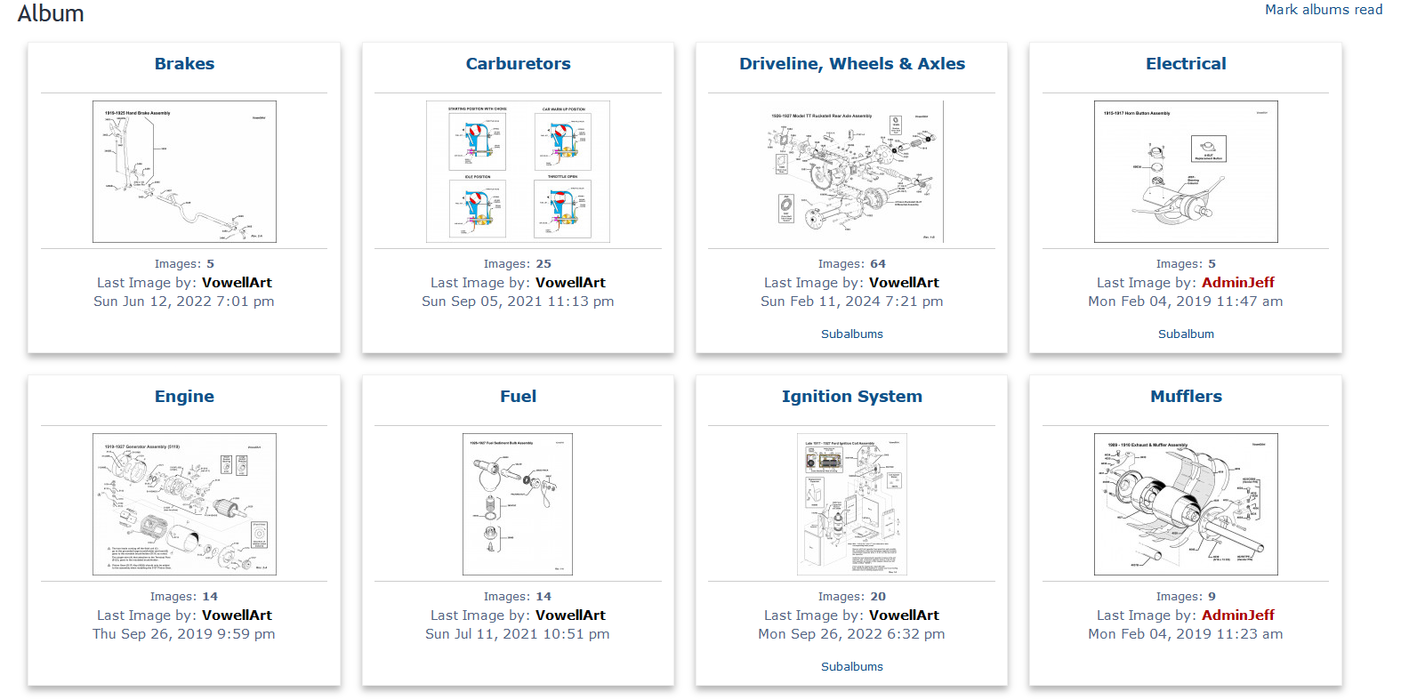 What if there was a diagram (picture worth a thousand words)? Example: a sketch of photo of a starter, with lines extending from the starter to all the part numbers for sale, even those on back order. It might even convince me that I need to get screws for the Bendix cover. Maybe I'm just spoiled in the computer tech industry when I can see an exploded view of a laser printer with all the parts labeled. The printers will change, but the T will not. So, creating such a view should be a one time endeavor.