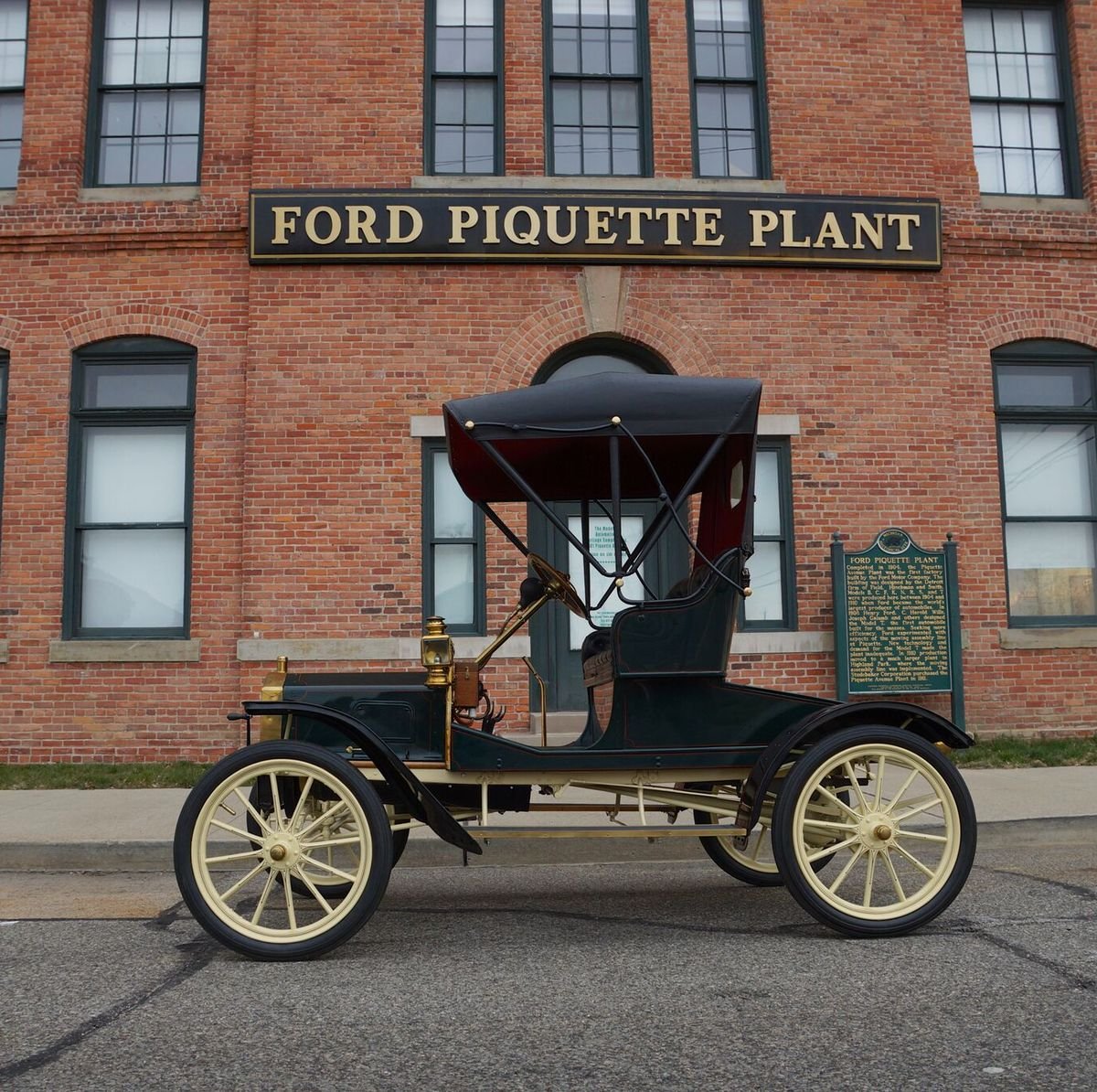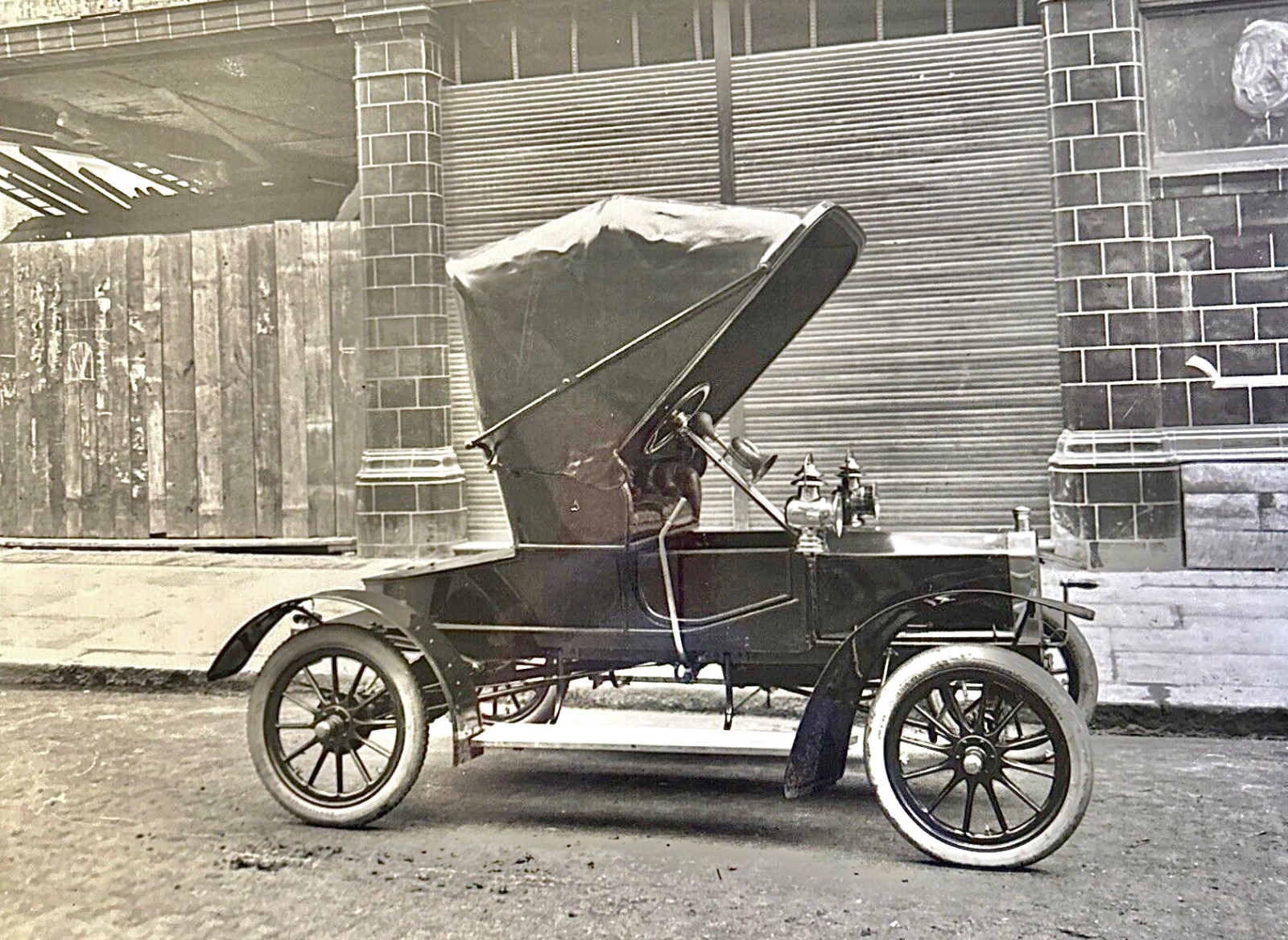 The photo in front of the Piquette Plant shows the R in the Porter Collection that is on display there. The 2 old photos show the R with larger wheels and a very different fender and running board profile. The tabs for the buggy rail for the top are located around the top of the seat, as they were on later Ns, Rs, S Runabouts and S Roadsters. Lamps are square. And the old photo with a top, you can see how wide the tail of the body was seen thru the rear fender.