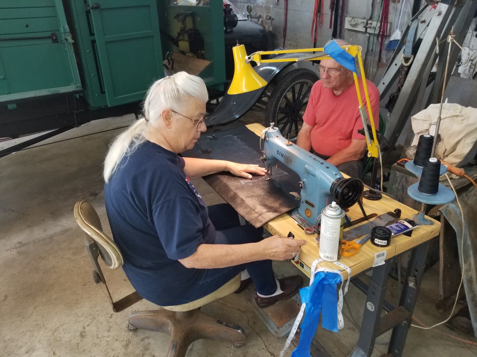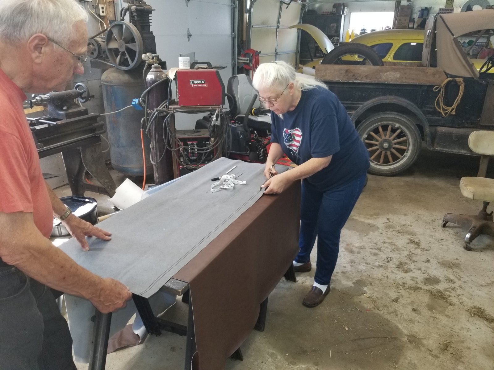 A little bit more! My folks are here from Minnasota for a few weeks. Mom brought my her industrial singer for working on these old heaps. Ive been in training on its use. We made a prototype of the rear flap for the MP cab.
