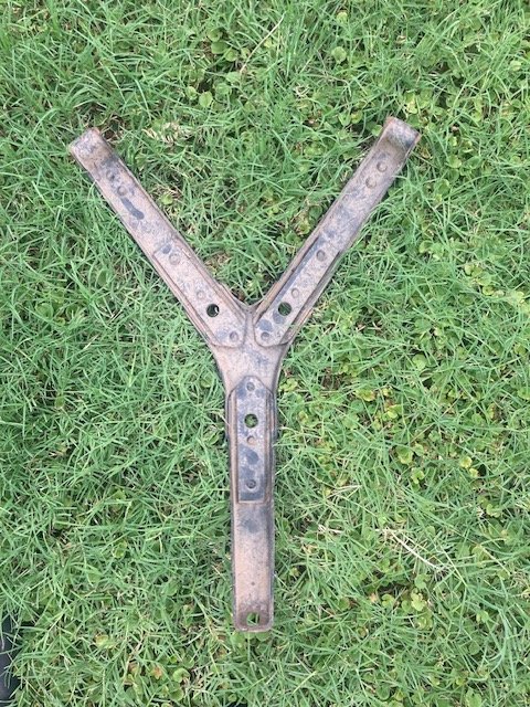 Everyone has mentioned the 'spool' that mounts the Y to the rear trunk panel, and the Y, itself, but the poster stated that he needed a spare rim, too, and no one has offered one. The 21" rims came with two locking mechanisms. The early used a pivoting latch, rivited to the rim, and the later, used a special round headed, slotted bolt to secure the ends together. The owner would have to remove one or more rims from his wheel fellows to see which rim he needs. If he has the early rim, I may have an extra which is zinc plated as original, but I'll have to check to see if I still have it.