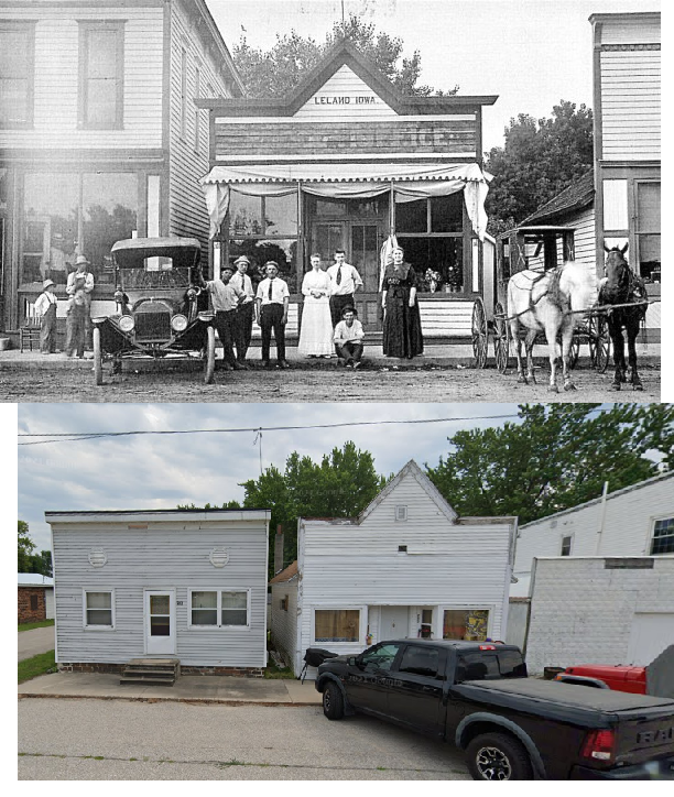 Number four, Leland Iowa. Interesting that what was probably the Post Office building has the "N" backwards. Culturally, that used to be quite common with several letters of the alphabet.