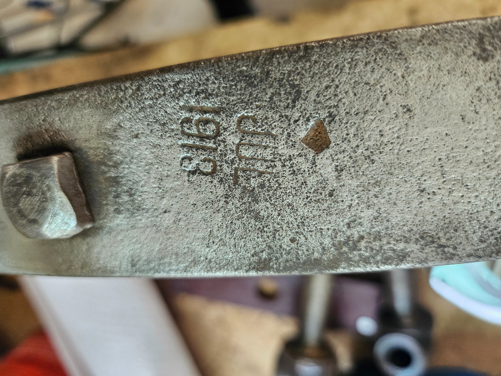 The top spring, where it mounts/sandwiches up with the spring pad & frame generally traps enough dirt/moisture to rust/pit the top spring. Daisy's still pristine enough to see manufacturer & date marks. Anyone know what the "A" references? There also appears to be other markings next to the A, but more like hand imprinted vs stamp. While she is an early '14, the spring pack itself was built July 1913.