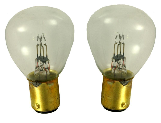 Given the two bulbs below the filaments of the one on the left are tight together and almost form a square at the wire ends & bright and dim filaments are at the same height. If there is an argument on bulb orientation it would apply to this design of the bulb on the right with its filaments spread out and at different levels. Not much within the sweet spot. A two filament bulb which shines light onto a parabolic reflector and then through the lens into the area in front of the car. The parabolic reflector takes the light from the bulb and directs it parallel to the bulb’s axis in straight lines which means that the light is therefore organized (like a flashlight) and more useful than the scattered light of say a candle flame. The filament of the bulb will be positioned at the focus of the parabola making full use of the reflector to give the greatest light quantity. The parabola makes all the light waves nice and straight and organized and the lens can do its work to direct the light. The reason why these early cars had round headlamps was that it is the resulting shape for a parabolic reflector. The ribs on these headlamps’ lens’ aren’t for your pleasure they are called flutes, and it is their job to direct the light into the required direction. Nominally downward away from an oncoming driver’s eyes and to the off driver’s side direction.
