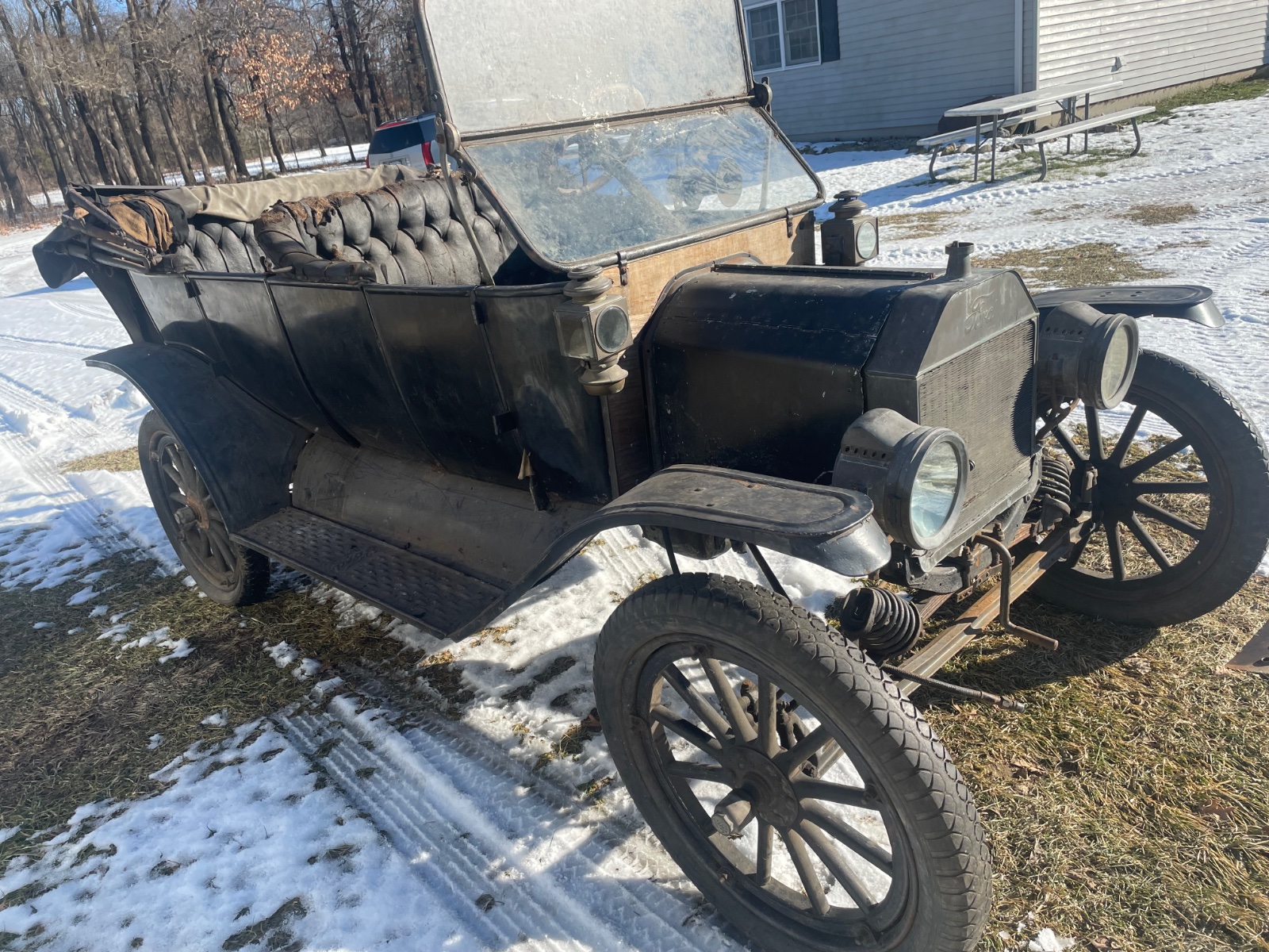 I have this one it’s early around body number 191xxx. It doesn’t have the reinforced rear door brakets and has knurled spark and throttle levers and it appear to have the original paint and upholstery and it is black. Notice the all brass lamps and billed front fenders although one has been replaced.