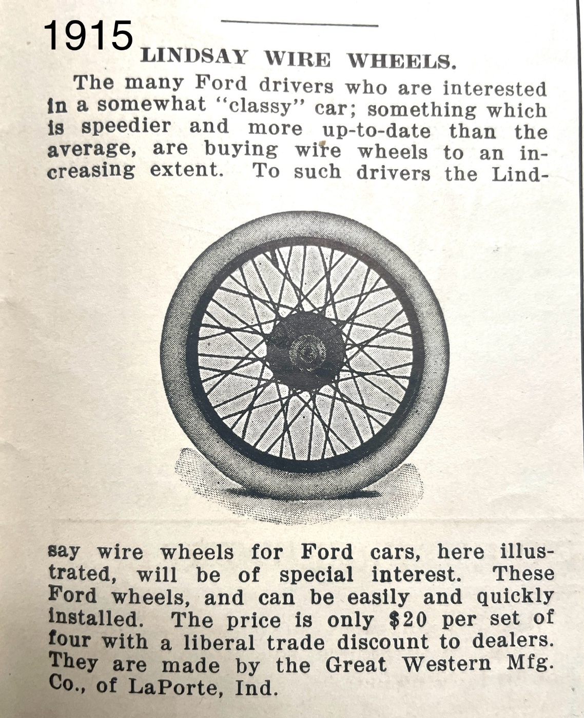 This adv shows a version with large hubs, but with demountable rims, perhaps for other than Ford. The adv. says for Fords and maybe your clincher rim is one version.