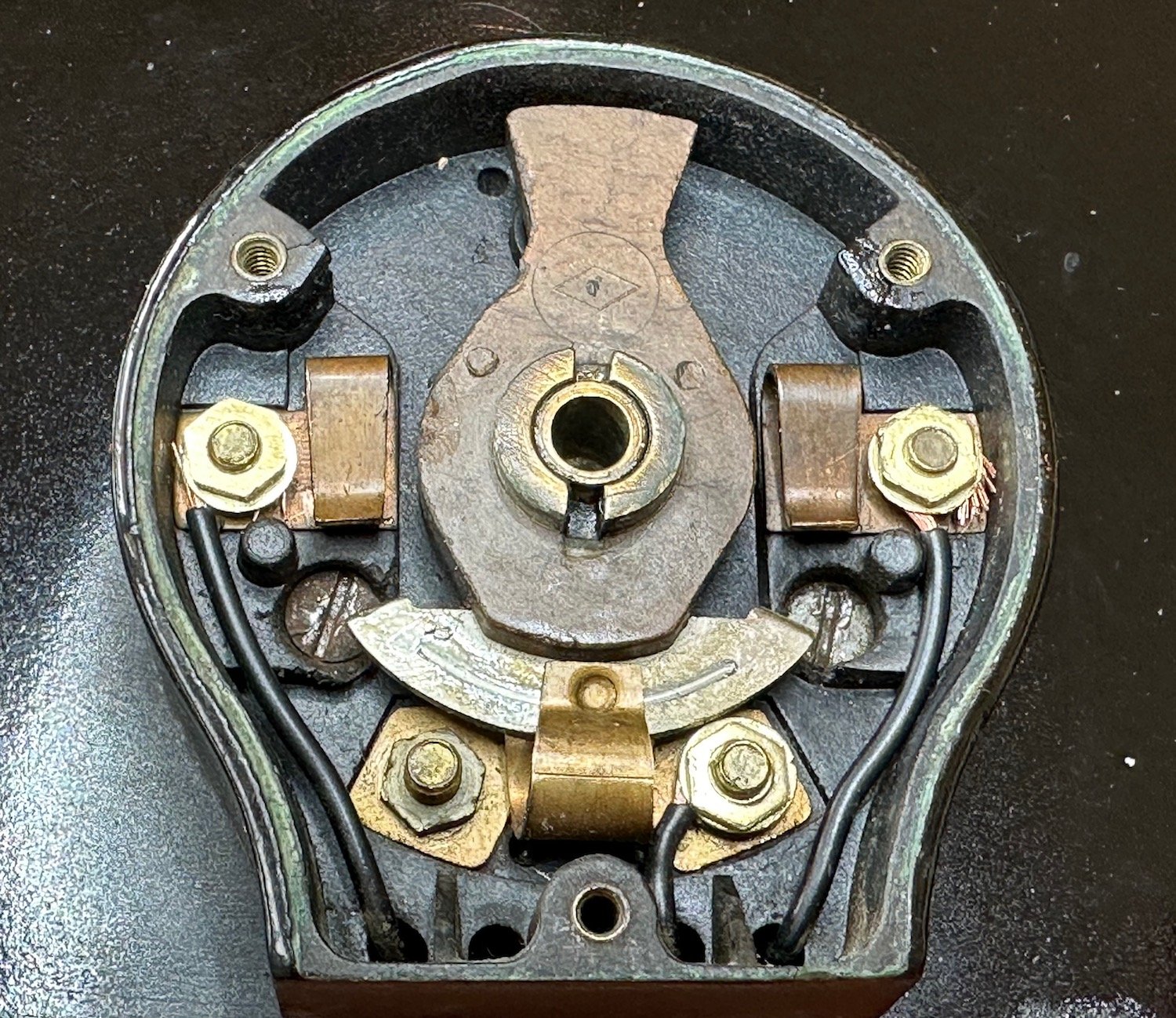 The starter ground normally but no fire, not even a pop. I suspected the switch as my '23 had a lot of trouble with the switch which acted the same way. Not knowing what to do to test any of this, I took it apart. I had one of the plastic wood kits in stock and wanted to replace the old wood so it made sense to look the switch over and do everything else at the same time.