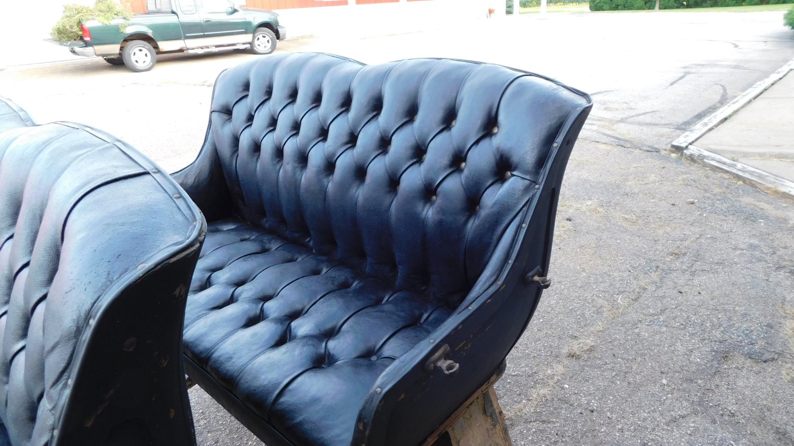 For sale are a matching front and rear seats. I think buggy, some say an early car. They are all original excellent condition and they are real leather. The wood is also in great condition with no rot and very minor original paint loss. They are as good as they look. The robe rail is brass. I think they were taken off when nearly new. $1,200. Located in S. Mn. NO TEXTING. five07458677eight.