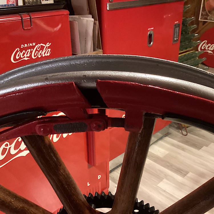 These photos were sent to me by a relative asking if I knew what the heck it was. I said I’d ask here. It looks like it converts a non demountable to a demountable rim. We were speculating that it might be used for a quick change for a flat but that’s just a wild guess. Anyone got any info on it?