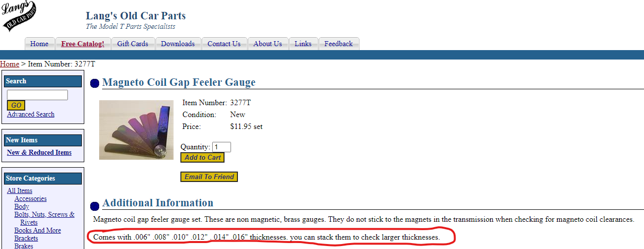 One ace Model T guy told me once that he set the magneto gap at .010" and it made that car a charging son of a gun. I don't have the guts to do that. The recommended .025" to .040" is close enough for me. I aim for .028" to .030".