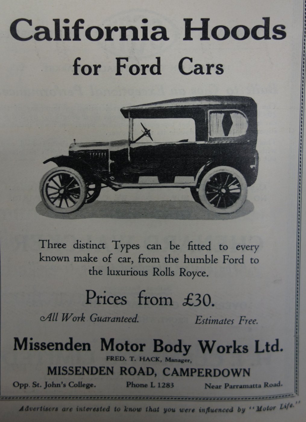 Here is an ad for one avalable in Sydney in 1923 and a "Spark" ( a Ford rebadged which also offered the California Top)