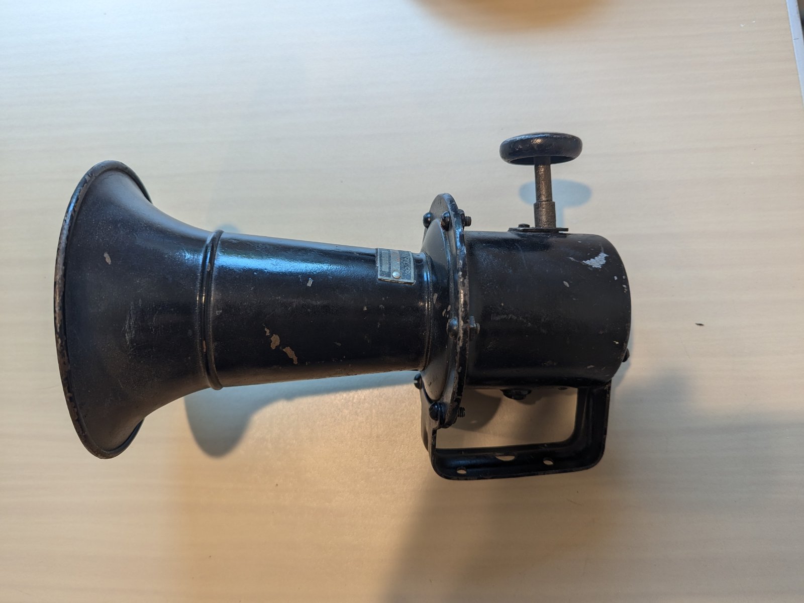 Spartonet (model F) hand operated horn. The horn does work and appears to be complete; however, the knob / push assembly is quite loose. As a result, the push assembly will often not return to the fully extended position and requires a slight jiggle. Asking $30 plus shipping or can pick up in Burbank, CA.