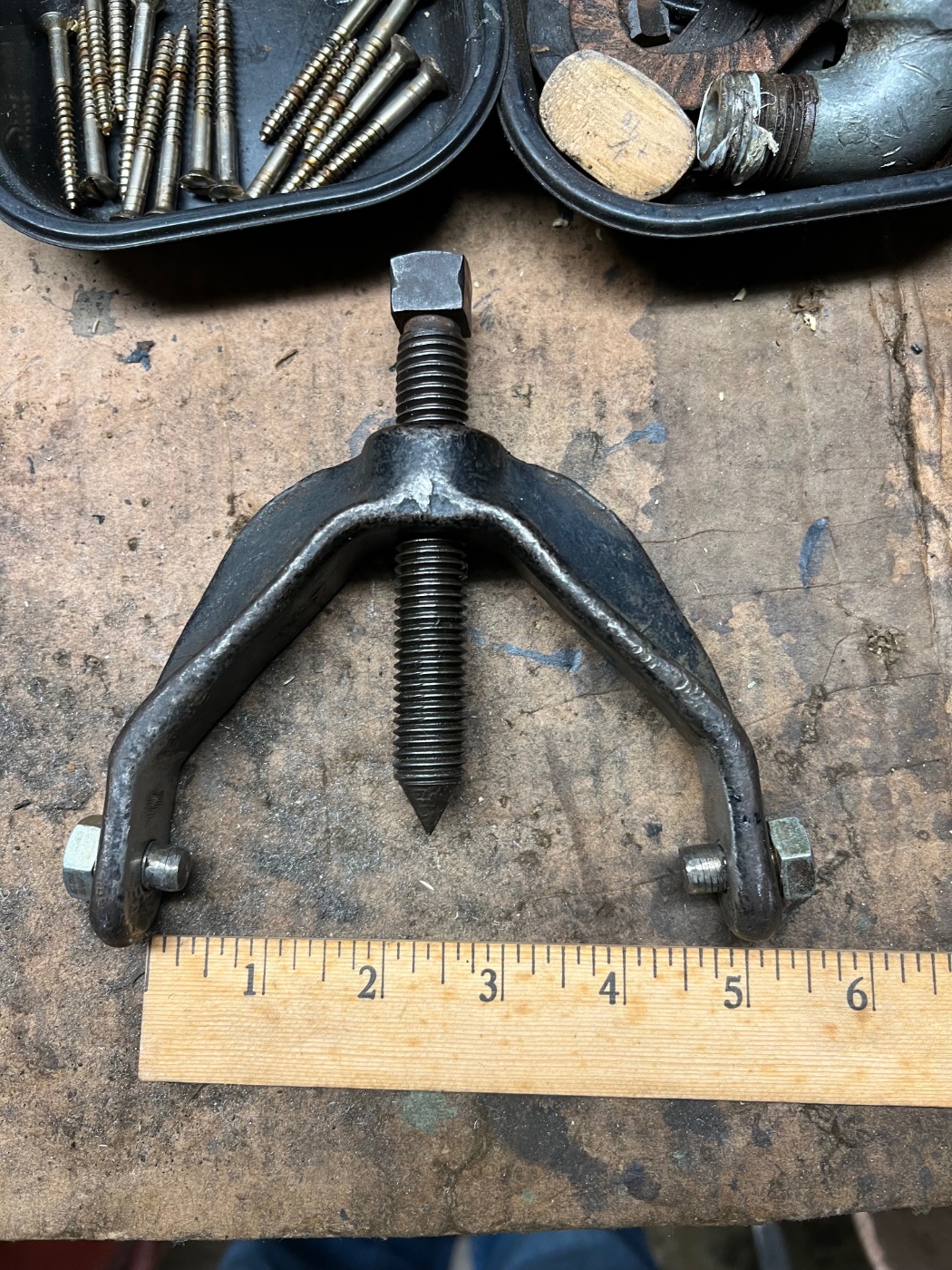 I made a puller from scrap. It's not pretty, but does the job quite well.