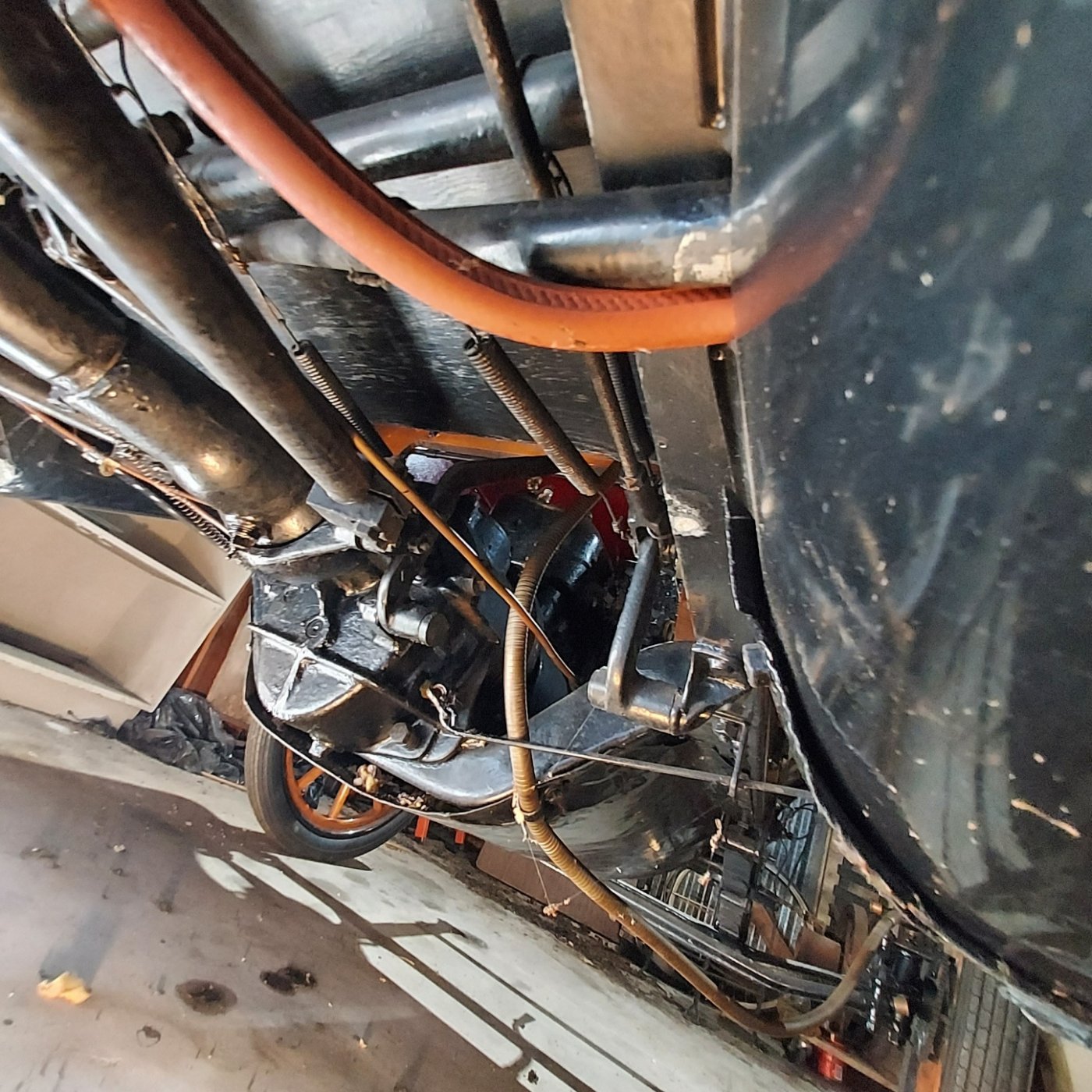 this car has a third oil line going to the front with a pull rod that I have not seen in any other pics is that a add on? Wayne S. Wayne M. said he