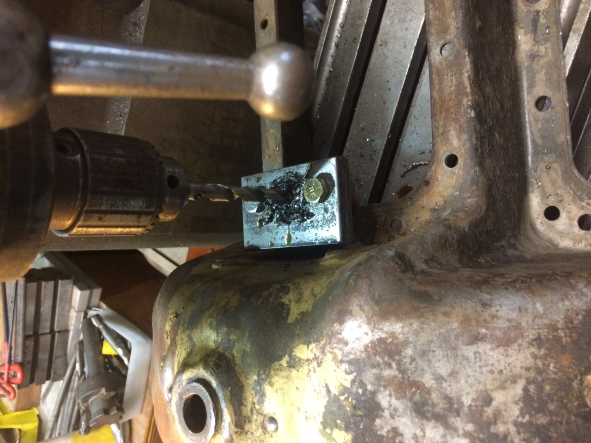 An 1 1/4 " ball mill requires a lot of pressure to cut weld. I can't see how a drill press would work. I did the same thing using a tig welder and silicon carbide with a 1910 pan and the pressure warped the pan on a mill. I like the idea of brazing the hole. Not so tough to cut
