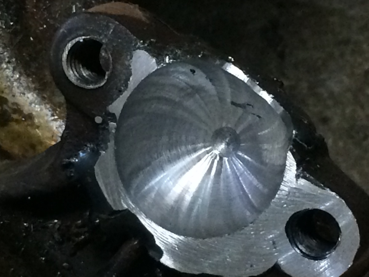 An 1 1/4 " ball mill requires a lot of pressure to cut weld. I can't see how a drill press would work. I did the same thing using a tig welder and silicon carbide with a 1910 pan and the pressure warped the pan on a mill. I like the idea of brazing the hole. Not so tough to cut