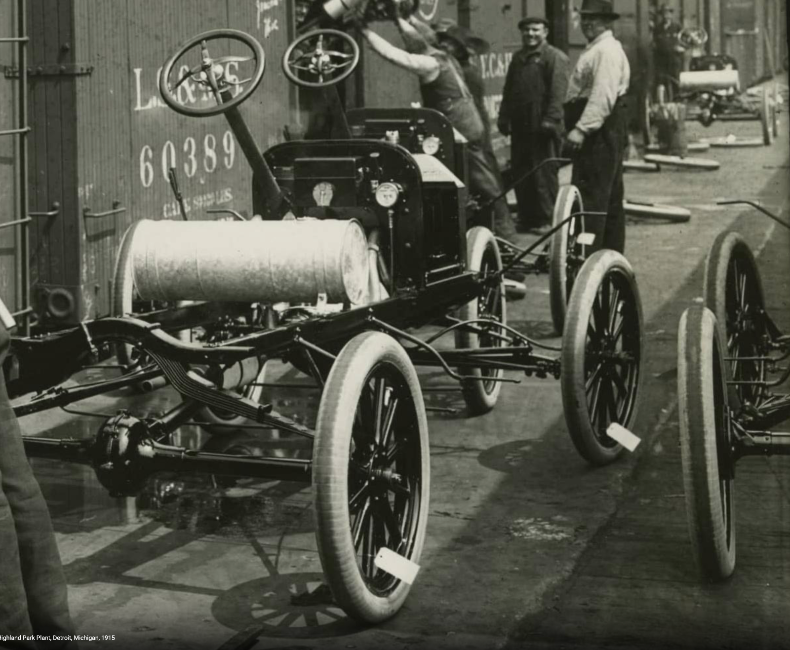 Here are two 1914 assembly line photos from different angles, showing what looks like an unpainted adjusting rod. One 1915 factory photo shows what looks like an unpainted rod, while another on the shipping dock seems to show one painted. A garage repair photo seems to show unpainted but its hard to be certain.