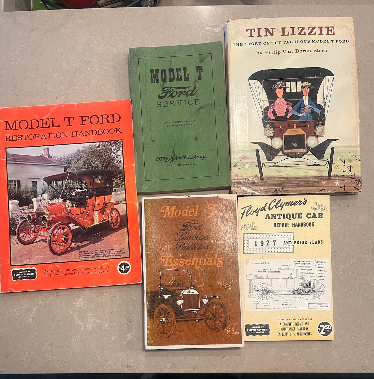 Model P Ford restoration handbook, model T Ford service published by Ford motor company, model T Ford service bulletin, essentials, Floyd Clymers antique auto repair handbook 1927. All $10 each, plus shipping.