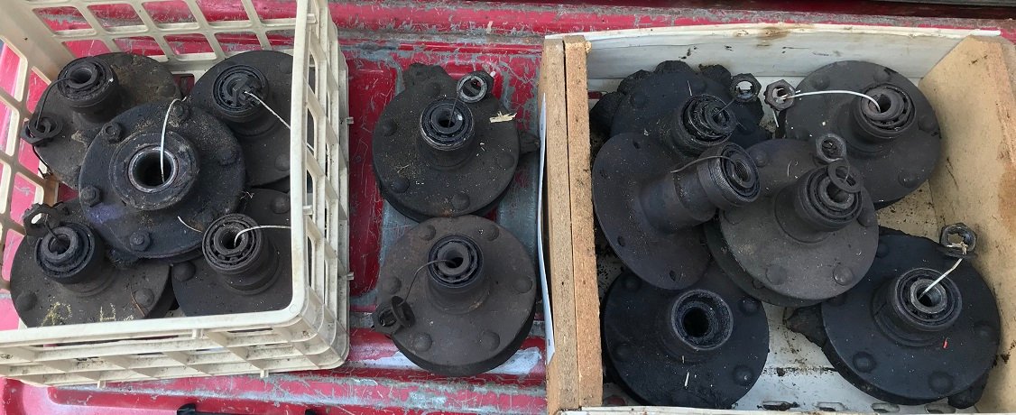 I have a number of front wood wheel hubs.No time to clean them up (de-grease) or check the bearings out and if I did the price would be higher. Doubt if the bearings are any good. I am checking hub cap threads & keyways etc. $35 a hub w flange ( plus shipping )