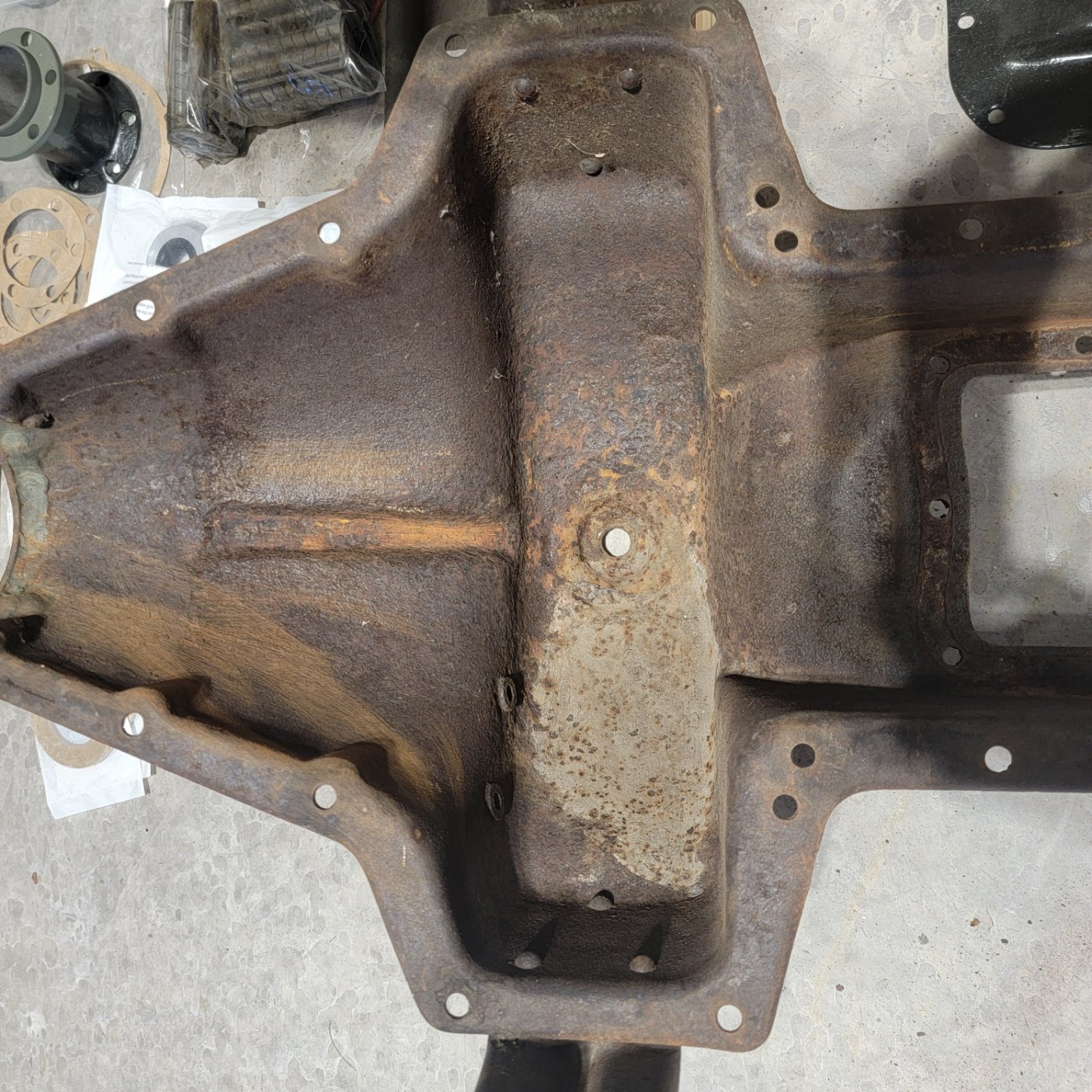 I was planning to use electrolysis to remove the rust, paint it and move on, but I may need to find a replacement oil pan.