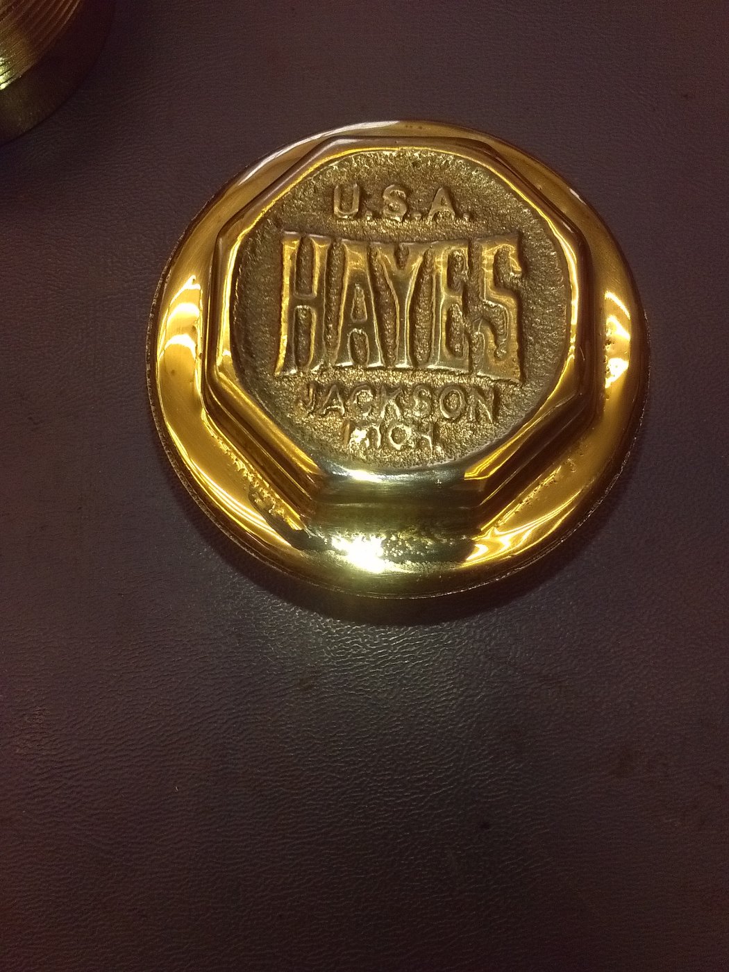 Looking for a needle in a haystack! Below is a picture of a HAYES wire wheel hubcap in brass. They were also made in aluminum. Diameter is 2 1/4 inches. Does any body have an extra one? I have three and need a forth. Thanks MTFCA!