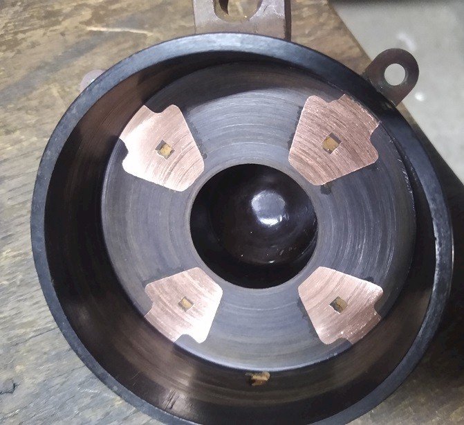 Check the timer rotor. Here is the brush. It wobbled back and forth. I squeezed the sides to remove play and it's three times better. The switch can lose continuity. When I found problems using the VOM, the switch was out of the equation as it was OFF and I was bypassing all use of 6v by testing only the ground side. Ground to rotor to contact surface to wire terminals at the coil box. But, if Vern honestly doesn't know what "new" is, I'm certainly willing to cycle and clean it.