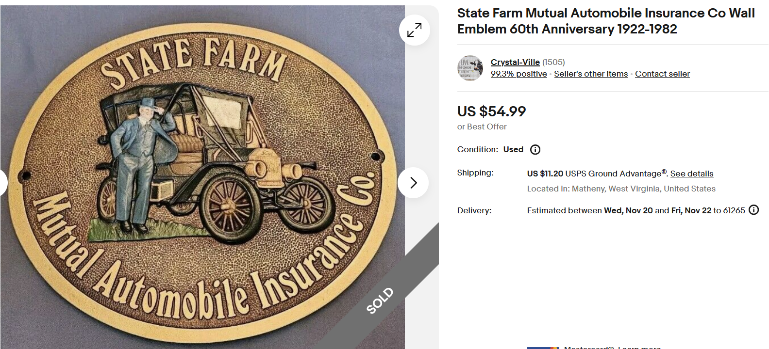 Your photo could be worth more than you think if its an original. It may have been given with the plaque. I was not able to find a photo other than the one on Facebook posted by a StateFarm agentNealW wrote: ↑Sun Nov 17, 2024 4:10 pmThanks for the info. At least I now know who the guy is in the photo and on the plaque! The gentleman for whom the estate sale was for appeared to work in the Bloomington home office, based on some of the other stuff for sale. The framed picture looks at least 40 years old and was framed by a Bloomington, IL shop. Anyway, the plaque was less than eBay prices and it makes nice garage wall decoration that I now have the back story for.