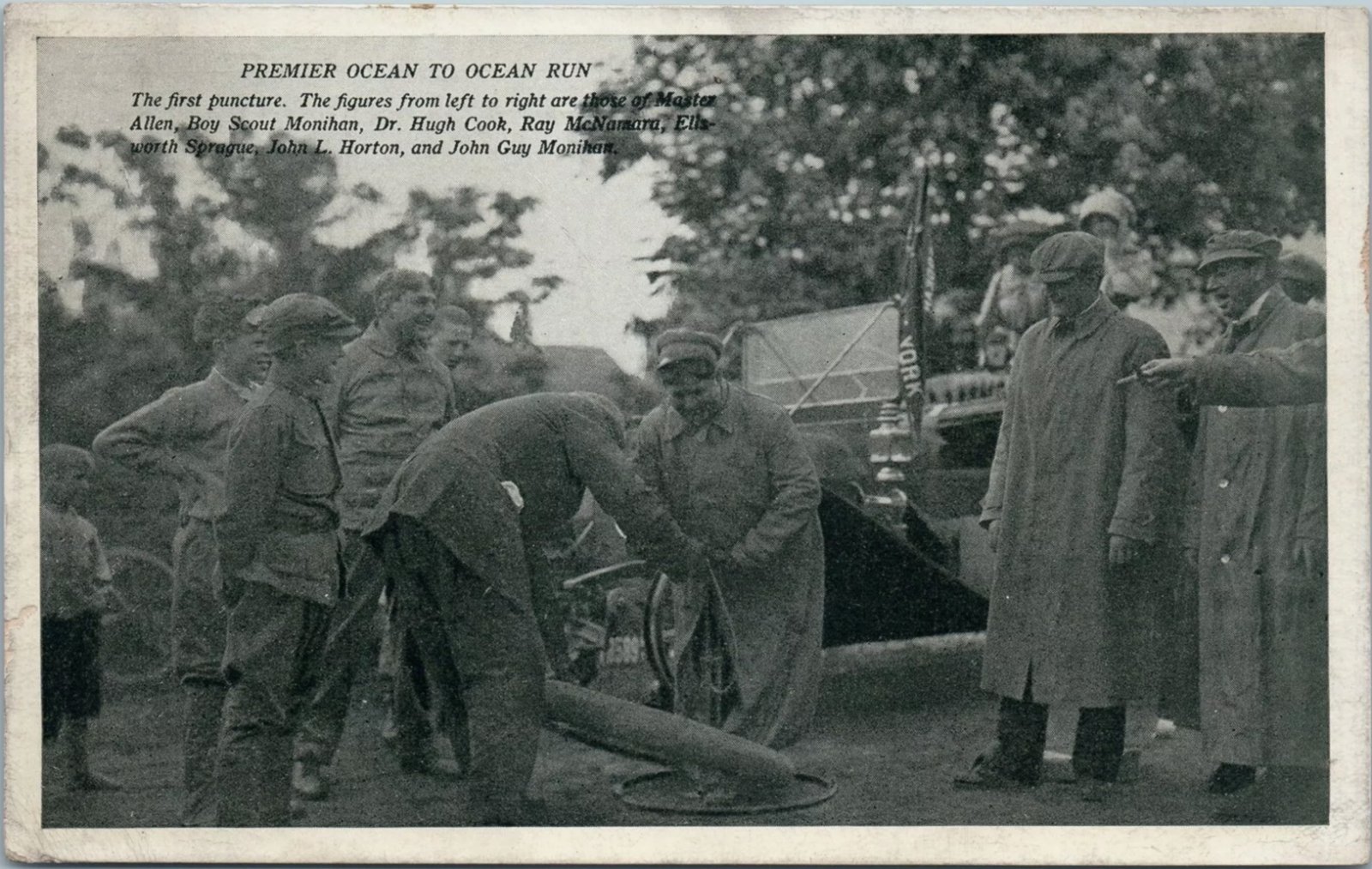 Eric, I found this old postcard on eBay and it says Ocean to Ocean 1909. I don't recognize the names of the people, but the flag on the car seems to say New York.
