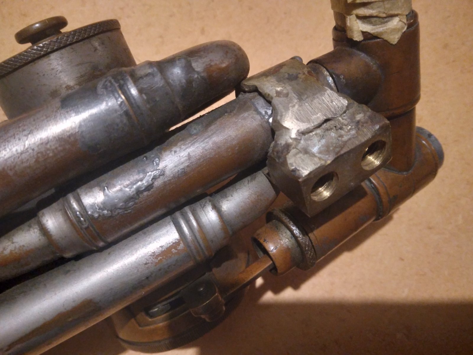 I have a Le-Testophone musical horn for sale. It is a Bulb type and has 4 separate length horns. I have not seen any of these in a long time on the old cars. They were a very popular accessory with the brass era guys for a long time. This horn is in pretty nice condition. I tried it when I first got it with a bulb I had then. The slide valve worked, and I got all four horns to sound off. Each squeeze of the bulb sounds a horn and then rotates the valve to the next horn, and so on till all 4 horns have been sounded and then starts over with the first horn again. This horn will need to have the slide valve at least cleaned and oiled. The dust cap on the end of the slide valve is missing but it is just a simple metal cap that should be easy to find or make. The mounting bracket works as-is but could be made to look a little nicer with a little cleanup and make the brazing look a little better. There are a few small dings in the horns but nothing major. All the brass is solid and does not have any stress cracks. Overall, it is a nice restorable horn that very few people have. Im cleaning out the shop of projects I no longer need, So it's time for another person to be the new caretaker.