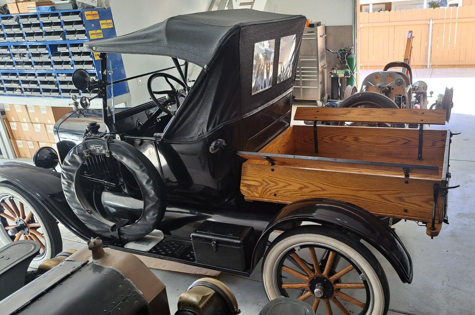 Very nice 1923 Roadster PU. Older restoration with new top and upholstery. New battery, tubes, rebuilt carburetor, hoses, spark plugs, wires. New band linings. Texas T distributor and coil. Brassworks flat tube radiator. Etched wind wings. Unique spare tire carrier. Steering stabilizer. Accessory spot light.