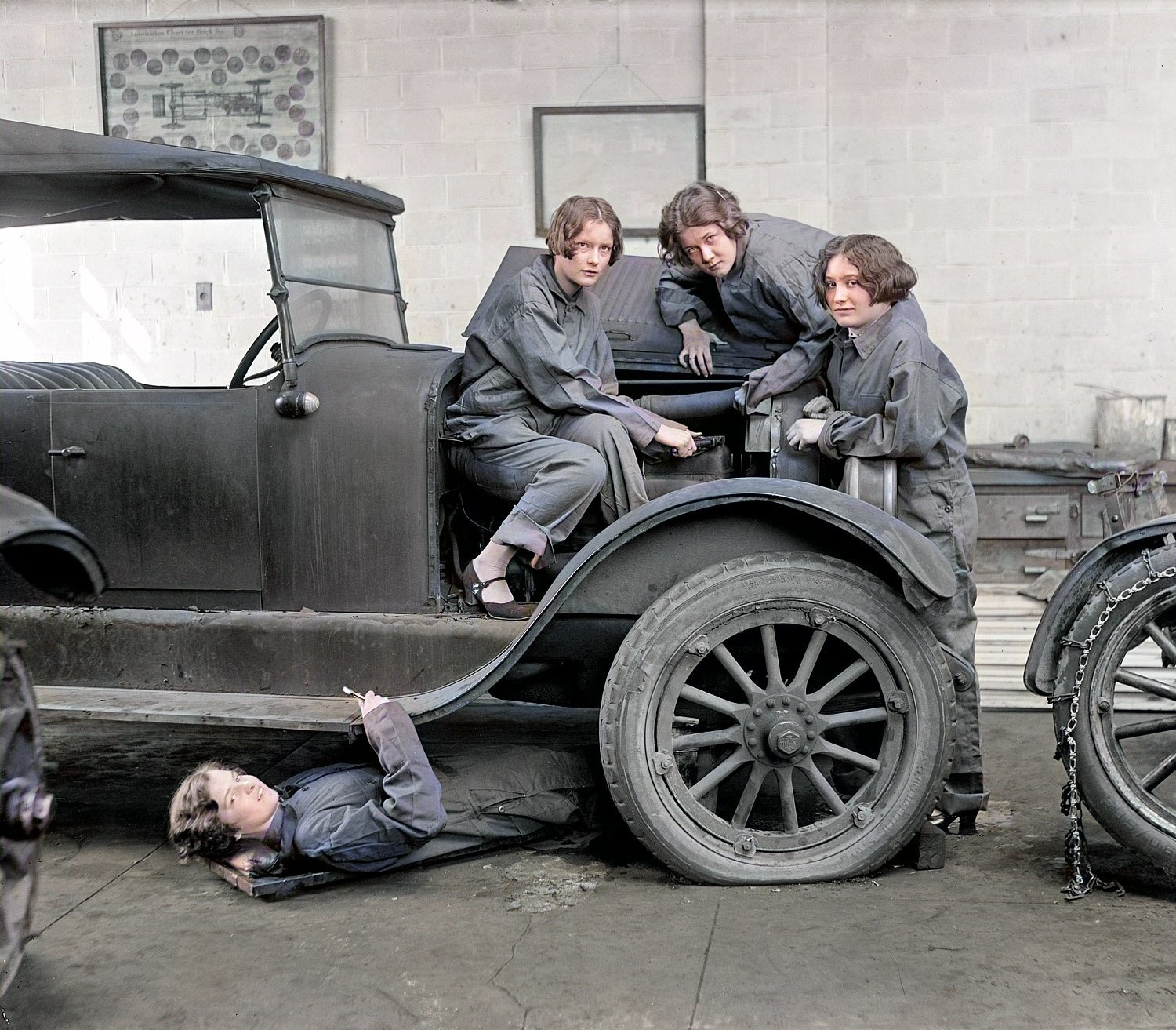 There is at least one other photograph showing Grace and compatriots from Central High, working on vehicles (Model T's and, I believe, a Buick?). One of Grace's classmates, Evelyn Harrison, graduated in engineering at the University of Maryland (where she enrolled in 1928) and went on to become 'the highest ranking woman at the Civil Service Commission'. A little more detail is available here: https://www.shorpy.com/node/2974